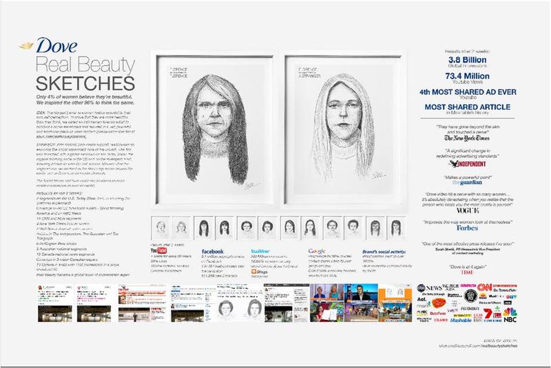 Based on survey data showing only 4% of women feel confident about their appearance, this Unilever Dove campaign conveys "You are more beautiful than you think." A former FBI sketch artist creates two portraits. For one, he draws a portrait without seeing the subject's face, listening only to her describe her own appearance. The second sketch was drawn while listening to a stranger's impressions of the woman upon first meeting her. When both sketches were shown to the women, they found the sketch based on the stranger's description to be more beautiful and more like themselves. This became an encouragement to women: "You can be more confident in your own appearance."