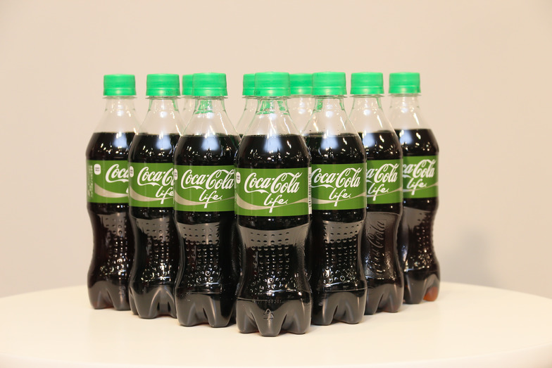 Launched to mark the 100th anniversary of the Coca-Cola bottle, Coca-Cola Life is a health-conscious carbonated beverage that combines reduced calories with the familiar Coca-Cola taste by using sugar and a plant-based sweetener extracted from stevia leaves. It was named based on the concept of encouraging adults who are interested in health and have a positive outlook on aging to enjoy their "life." The use of green on the label is also new.