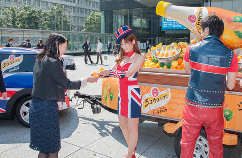 At the venue, actress and model Nanao, one of the Refreshers, arrived riding in the campaign car, the "Schweppes MINI." Dressed in a Union Jack-patterned outfit, she took the stage with poise.