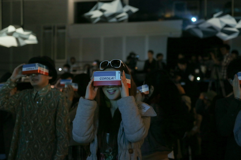 Next, Takuya Kimura, who serves as the commercial character, appeared from the driver's seat of the Corolla Fielder, eliciting cheers from the audience enjoying the virtual footage of driving over hills.