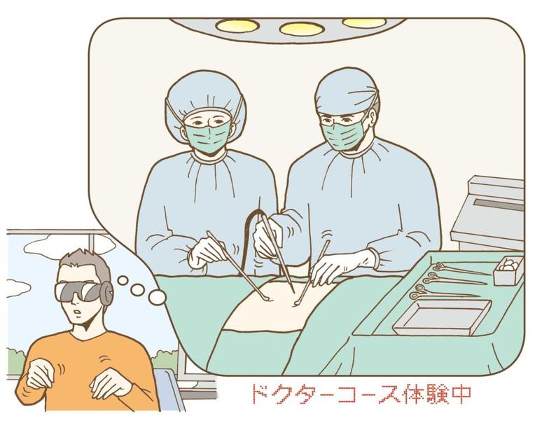 Furthermore, by wearing a "VR head-mounted display," individuals could simulate experiencing various occupations and roles within a virtual space. This would allow them to undergo aptitude assessments for specialized professions before employment, visualizing a future where they pursue careers they want to try or aspire to. Utilizing this as training material could also bring a day when opportunities to acquire and improve specialized skills become available at home.