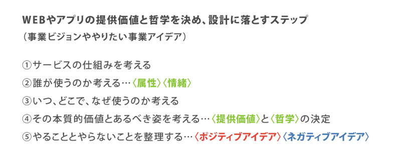 That is the "value proposition" and "philosophy" of web services and apps. These are terms I've coined myself: in web services and applications, the "value proposition" refers to "what the service provides," while the "philosophy" refers to "how the service should be" in order to achieve that value proposition. Semantically, it might be close to "policy" or "ideology."