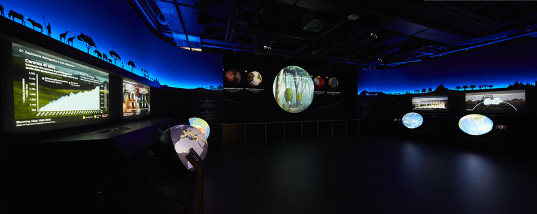 Introduces Japan's food production regions. Visitors are immersed in beautiful Japanese rural landscapes through a video space surrounded by mirrors and a waist-high "rice ear screen."