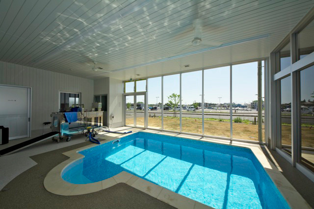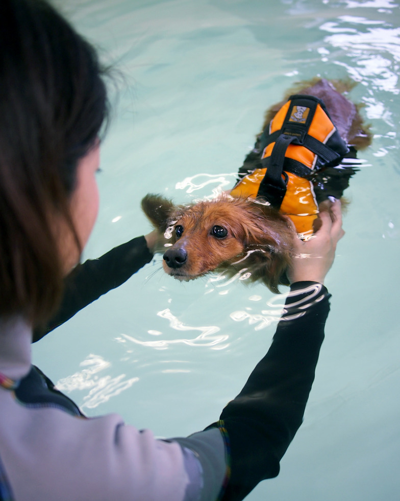 (Top) Rehabilitation-focused medical facility "I Animal Medical Center" (Bottom) Rehabilitation pool
