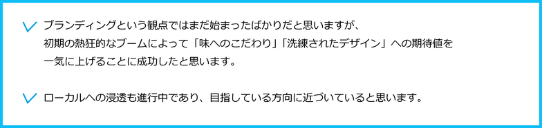 To further raise expectations and meet them going forward, I believe localizing the "educational content for enjoying delicious coffee" currently featured on the US website and hosting local events are key steps.