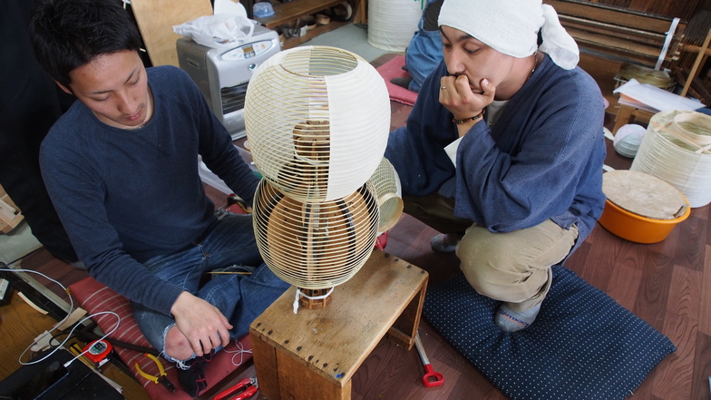 Ryo: Definitely connecting the lanterns together. It was our first time doing it. We wondered if the washi paper alone would hold the connection properly. Plus, even if they stuck, the weight might have caused the sides to sag.