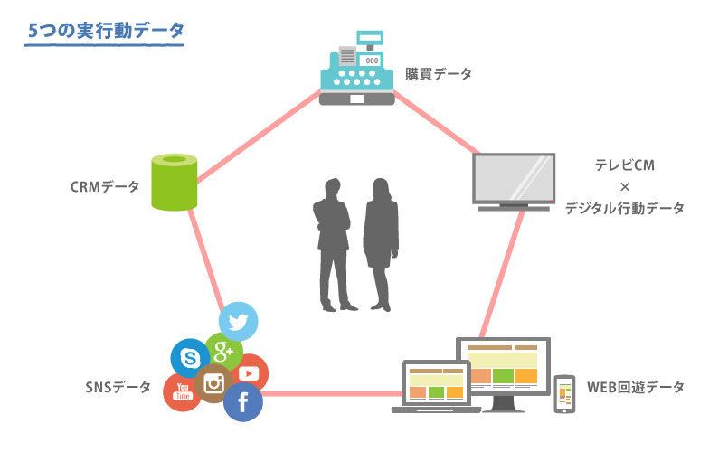 Actual behavior data includes: * Purchase Data: Reveals who actually bought what, when, and where. * TV Commercial × Digital Behavior Data: Shows what actions viewers took online after seeing a TV commercial. * Web Browsing Data: Tracks actual browsing behavior on websites other than the company's own. * SNS Data: Identifies who actually tweeted about the target brand. * CRM Data: Provides insights into the actual purchasing status of existing customers.