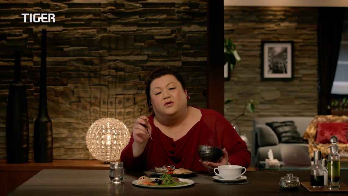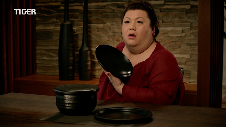 In the "Tasting" edition, Matsuko eats home-cooked meals prepared using products like the "Clay Pot Pressure IH Rice Cooker 〈THE Freshly Cooked〉" and the "IH Ceramic Grill." Her hearty eating style, expressions, and her unique way of describing the deliciousness captivate viewers. In the "Ingredients" edition, she notices the quality of the clay pot and is impressed.