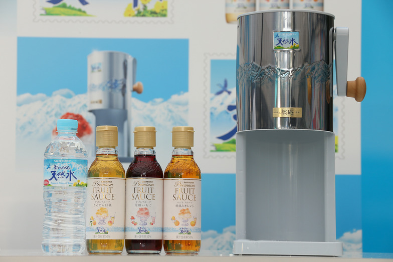 Additionally, Mr. Ishitsuki oversaw the development of three limited-quantity "Suntory Minami Alps Natural Water Premium Fruit Sauces" (Rich Strawberry, Creamy White Peach, Freshly Picked Orange), available starting June 30, and the "Suntory Natural Water Shaved Ice Server," which allows consumers to make fluffy shaved ice at home.