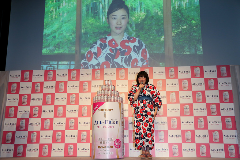 Suntory Beer held a press conference for its new TV commercial at Bellesalle Shiodome in Chuo Ward, Tokyo, on June 29th to commemorate the launch of "All Free Collagen."