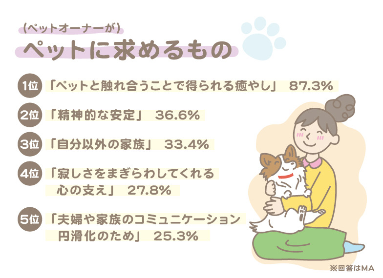 A notable reason gaining attention this time was "I thought it would be good for my child's emotional development" (7.2%). While 7.2% is not a particularly high figure, it represents a new trend emerging in recent years as a reason for pet ownership.