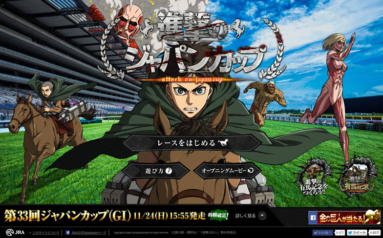 Kozuka: I've only been in the play-by-play career for just under 10 years, so I've never actually covered the real Japan Cup, Arima Kinen, or of course the Derby as an actual race. I ended up covering them online first, so to speak. There was that tension and excitement of thinking, "Ah, so this is what big races feel like." And of course, it was fun to be part of the world of such a super famous content like "Attack on Titan."