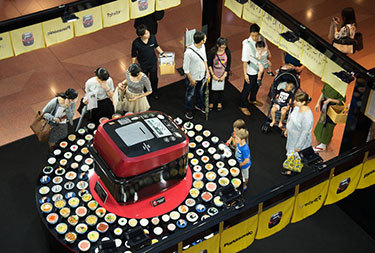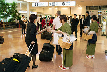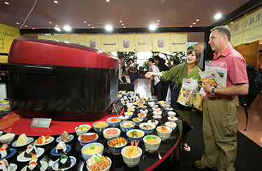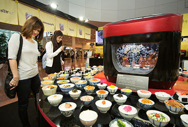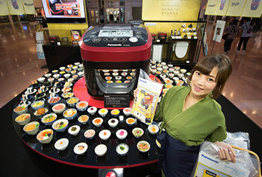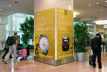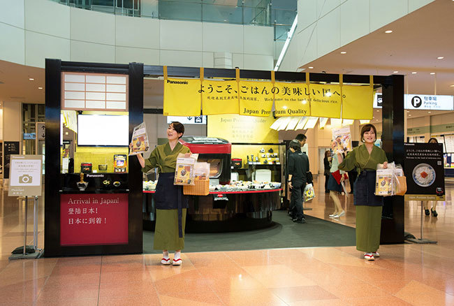 Upon arriving in Japan, a large rice cooker greets you. Panasonic holds a PR exhibition at Haneda Airport.