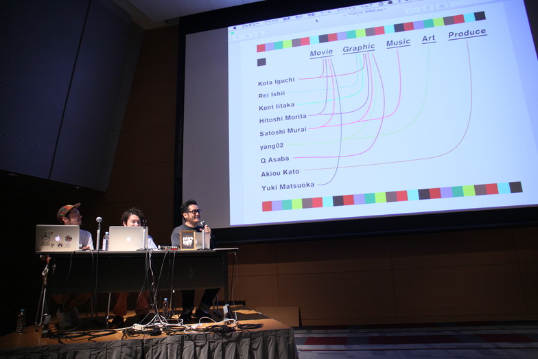 Murai: TYMOTE is a creative team founded by members born in the 1980s during their student days. We currently have nine members. For the 2007 exhibition "The SIX" at Yokohama Red Brick Warehouse, members from Tama Art University, Musashino Art University, Kuwasawa Design School, and others came together to create work as "TYMOTE" for the first time. Fundamentally, we're a "company created by graphic design enthusiasts who graduated from art universities," but we do everything from video to spatial design, graphics, and sound design—and that versatility is our strength.