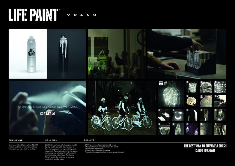 Along similar lines, another campaign that caught my attention was Volvo's "Life Paint." Volvo is known as a car manufacturer. Yet, this time they launched a luminous spray paint for cyclists. You might wonder, "Why would an auto manufacturer release something like that?" Volvo positioned it as part of their social responsibility as a carmaker, demonstrating a commitment to tackling accidents caused by vehicles head-on. In your image, Volvo cars are incredibly sturdy, equipped with the latest airbags and other features, constantly striving to protect drivers and passengers—their commitment to safety leaves a strong impression, right? However, this time they concluded that safety shouldn't just focus on those inside the car, but should extend to everyone around them. So they developed a luminous spray to prevent collisions and released it for pedestrians and cyclists. It became a huge hit.