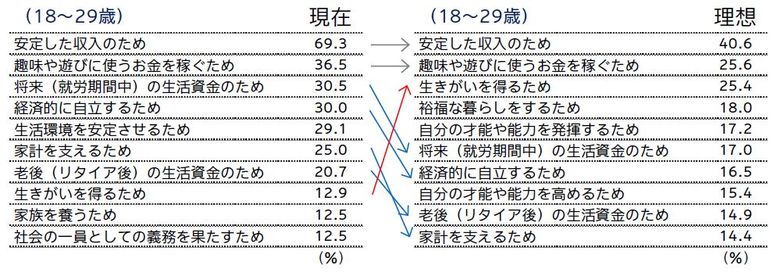 ● Reality: Working for stability and hobbies. Ideal: Gaining a sense of purpose through work. (Figure 3)