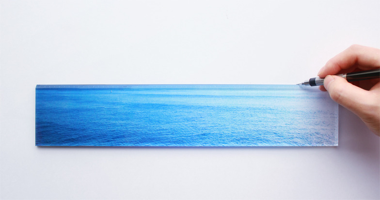 It was just an ordinary ruler, but by enclosing a photo of a horizon within it, it could serve as a pleasant landscape photo when not in use, and the act of tracing the horizon line would become a small pleasure when using it. I thought, "This might be good."