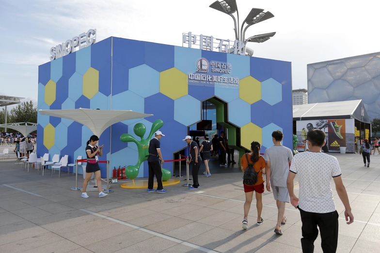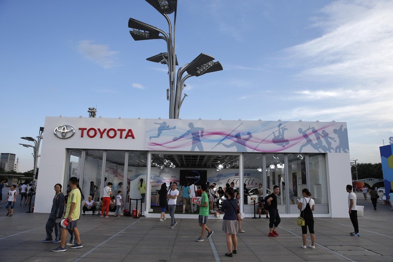 Sponsoring companies (TDK, Toyota Motor Corporation, Adidas, Canon, Seiko Holdings, Sinopec, VTB Bank) set up showroom pavilions on Market Street adjacent to the main venue, the National Stadium. They promoted their products alongside content designed to entertain visitors.