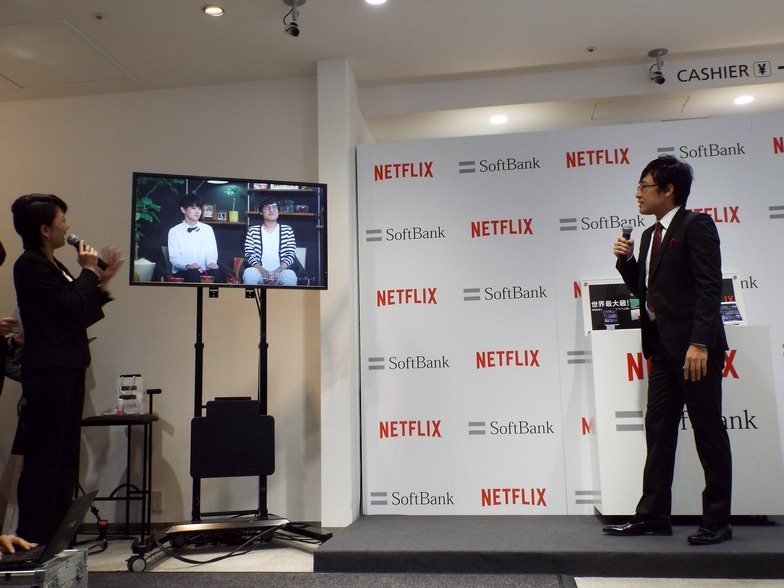 SoftBank and Netflix Japan, a subsidiary of Netflix Inc., held a launch event at SoftBank Ginza in Tokyo on September 2 to commemorate the start of Netflix service in Japan that same day.