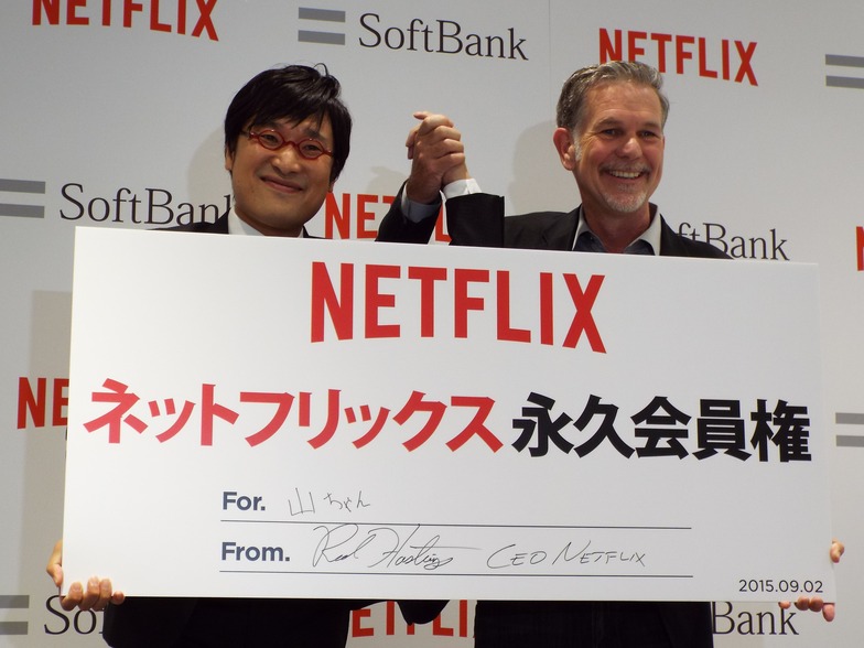 Netflix founder and CEO Reed Hastings and guest Ryota Yamazato (of the comedy duo Nankai Candies) attended the event.