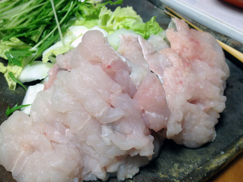 Farmed sea bream, shaved thinly. Even with an amateur's knife, it was delicious!