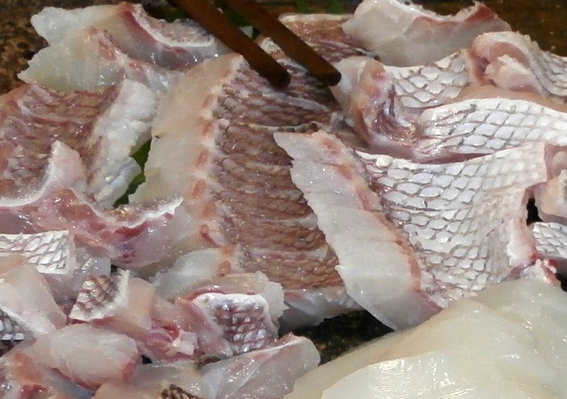 The deliciousness of Akashi sea bream is universally acknowledged, requiring no further explanation. (omission) Only females weighing between 500 and 700 monme are suitable for sashimi. Furthermore, the section about two sun wide, extending from the anus toward the head, is particularly superior in flavor.
