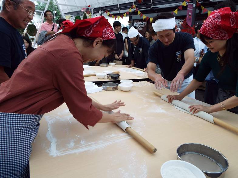 On the opening day, October 19th, a "Momiji Market" was held. It featured sales of specialty products like premium local sake and famous mineral water cider, along with hands-on workshops: one for making hand-cut soba noodles by the Nikko Handmade Soba Association, and another for candle-making by local artisans. Mayor Fumio Saito and his wife also visited, lightening the mood for the nervous staff with jokes.