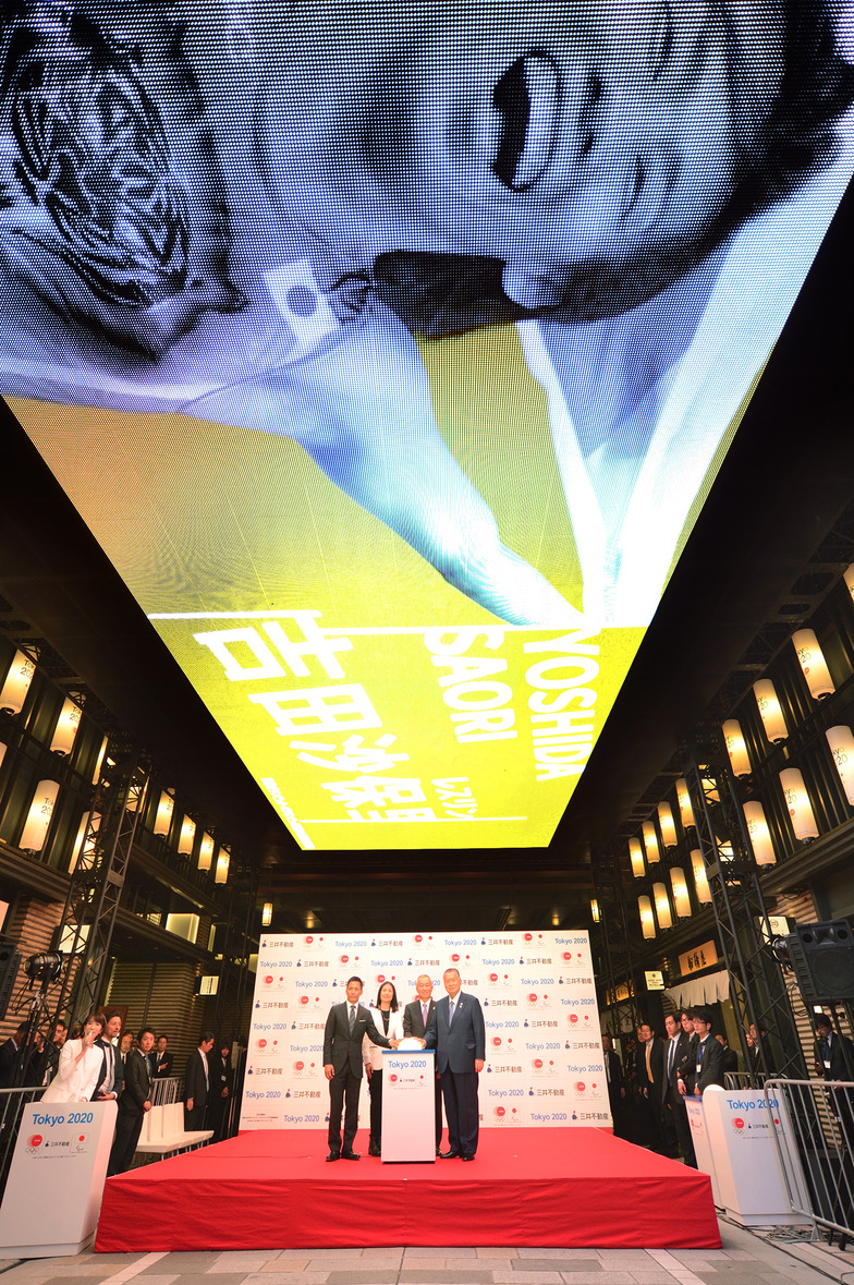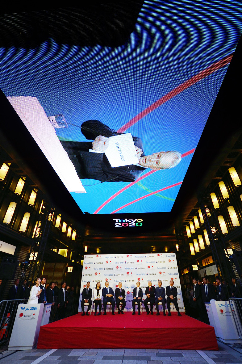 At the opening ceremony held on the 9th along Nihonbashi Nakadori, President Masanobu Komoda stated, "We planned this event because we wanted to send a message of support for the Games and the athletes from Nihonbashi—a place connected to our company and the starting point of the five major roads since the Edo period—out to the whole country. Starting with this, we aim to utilize venues across Japan, including the Tokyo Bay area, to carry out activities that energize both the city and the Olympic and Paralympic Games." Organizing Committee Chairman Yoshiro Mori remarked, "The key points of the Games are how to engage young people and making it a festival for major cities. Events like this are greatly appreciated to sustain the joy felt when the bid was won."