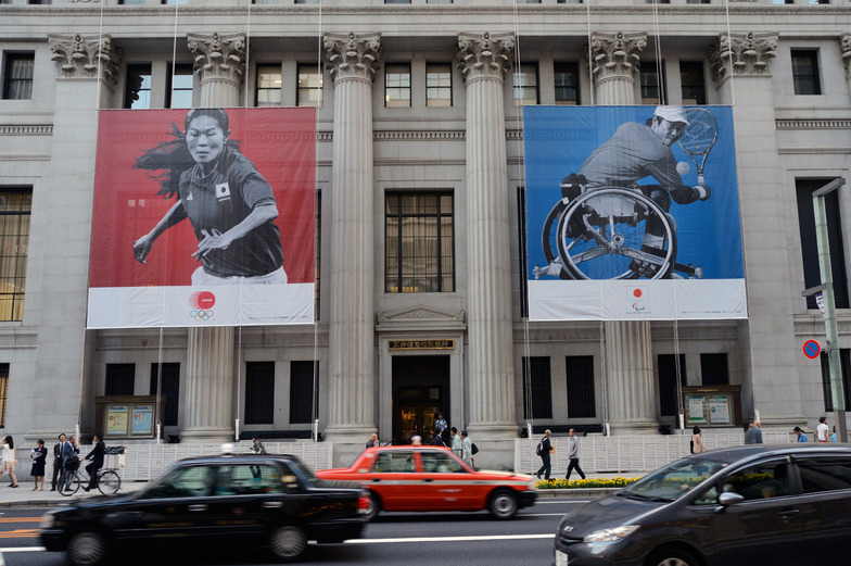 Mitsui Fudosan, a Gold Partner (City Development Partner) for the Tokyo 2020 Olympic and Paralympic Games, is conducting a large-scale "City Dressing" initiative (co-hosted by the Tokyo Organising Committee of the Olympic and Paralympic Games) in the Nihonbashi area of Chuo Ward, Tokyo, from October 10th to 25th. This involves decorating the city using footage from past Games and portraits of Olympians and Paralympians.