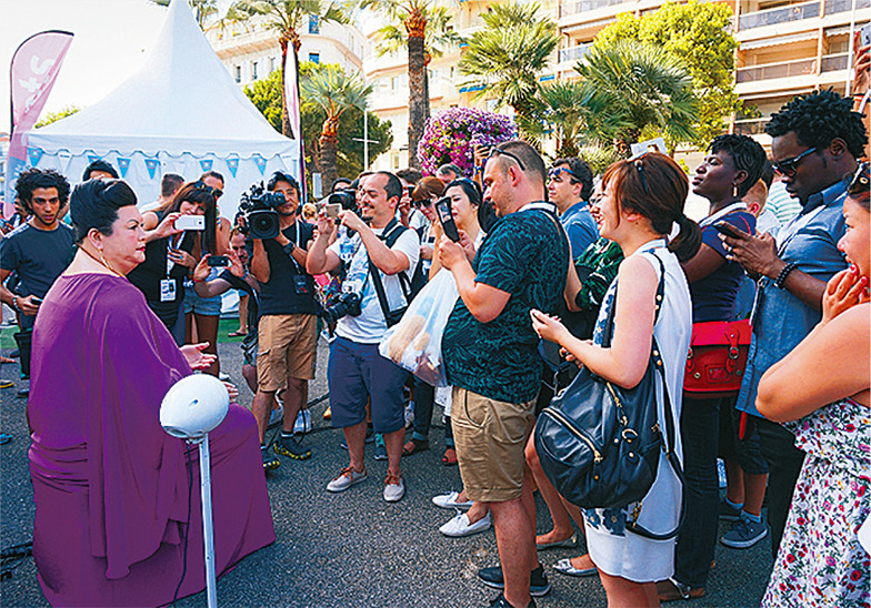 In June 2015, Matsukoroid appeared at the Cannes Lions, a global advertising event. Together with Professor Ishiguro and Yasuharu Sasaki, Executive Creative Director at Dentsu Inc. CDC, it gave a presentation before the audience. The topic was "How Matsukoroid Changed Television and Advertising." Although most in the audience were unfamiliar with Matsuko, the model for the robot, they were still amazed by Matsukoroid's sophistication and entertainment value, captivated by its speech and movements.