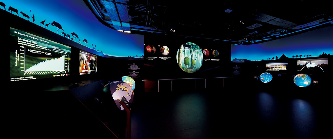 Takemura is also the creator behind this Scene III. He states: "The global crises in food and agriculture are truly severe. Behind many civil wars worldwide lie years of drought and food shortages." While global warming, water scarcity, and soil degradation threaten food production, the world now faces 800 million undernourished people and 2 billion obese people. The Expo Milano theme, "Feeding the Planet, Energy for Life," is a direct call to tackle both the quantitative challenge of food supply and the qualitative challenge of improving nutritional balance.