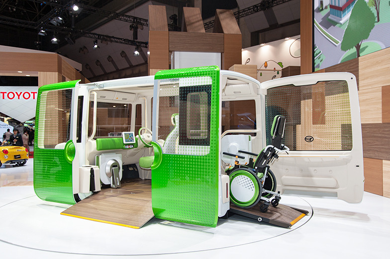 "NORI ORI" focuses on the hurdle users face when getting in and out of cars. It features an ultra-low floor, large two-way access doors, and an electric ramp, pursuing ease of entry and exit for a wide range of uses, from strollers to wheelchairs.