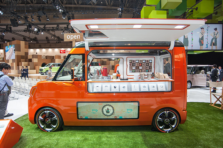 "TEMPO" proposes a "new genre space-oriented commercial vehicle" that maximizes the potential of the FF (front-wheel drive) platform as a new form of light commercial vehicle. It is a mobile sales vehicle that leverages the high flexibility of its interior space. It is equipped with a showcase incorporating a counter table and digital signage.