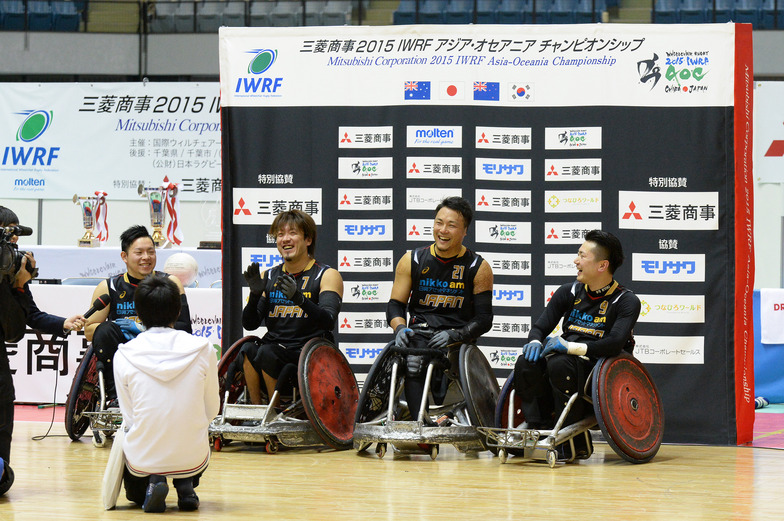 The wheelchair rugby tournament "Mitsubishi Corporation 2015 IWRF Asia-Oceania Championship" (Hosted by: International Wheelchair Rugby Federation, Japan Wheelchair Rugby Federation; Special Sponsor: Mitsubishi Corporation) was held at Chiba Port Arena in Chiba City from October 29th to November 1st. Four countries participated: powerhouse Australia, along with Japan, New Zealand, and South Korea.