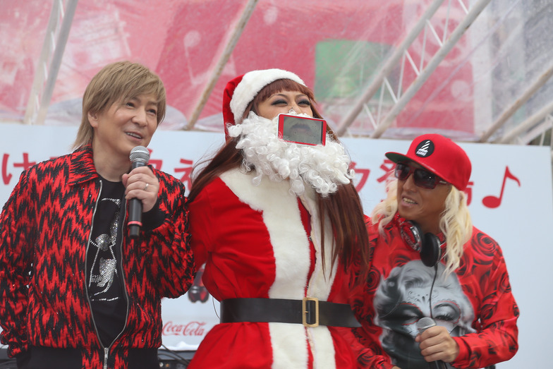 Next, impersonator Mikan joined the talk, and a song-guessing game began. Scanning the QR code on Komuro's selected winter song bottle with a smartphone displayed the "Happy Santa Movie" – a video of Santa's mouth. DJ KOO and Mikan then performed while posing questions. Both correctly guessed SPEED's "White Love" and TRF's "Because It's a Cold Night..."
