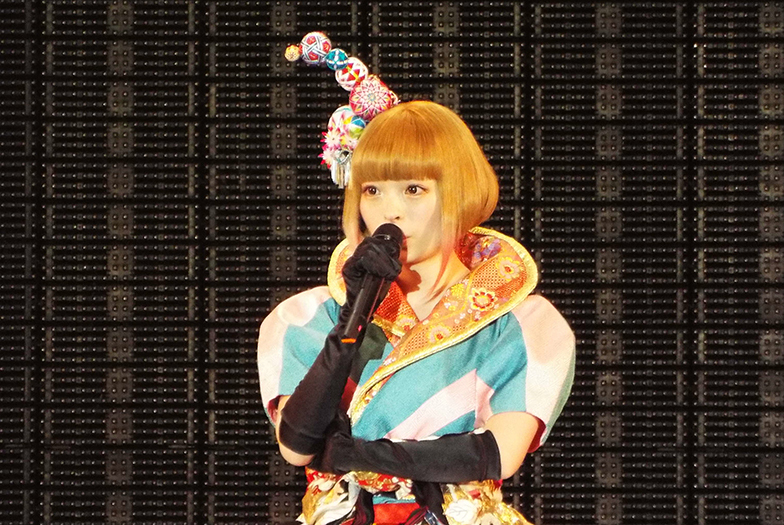 Amidst the darkness, the new commercial's theme song "Perfect Form" played as Kyary Pamyu Pamyu appeared on stage in her commercial costume. Her appearance was a secret, so the venue erupted when she first said, "Everyone, sorry for keeping it a secret. I'm Kyary Pamyu Pamyu."
