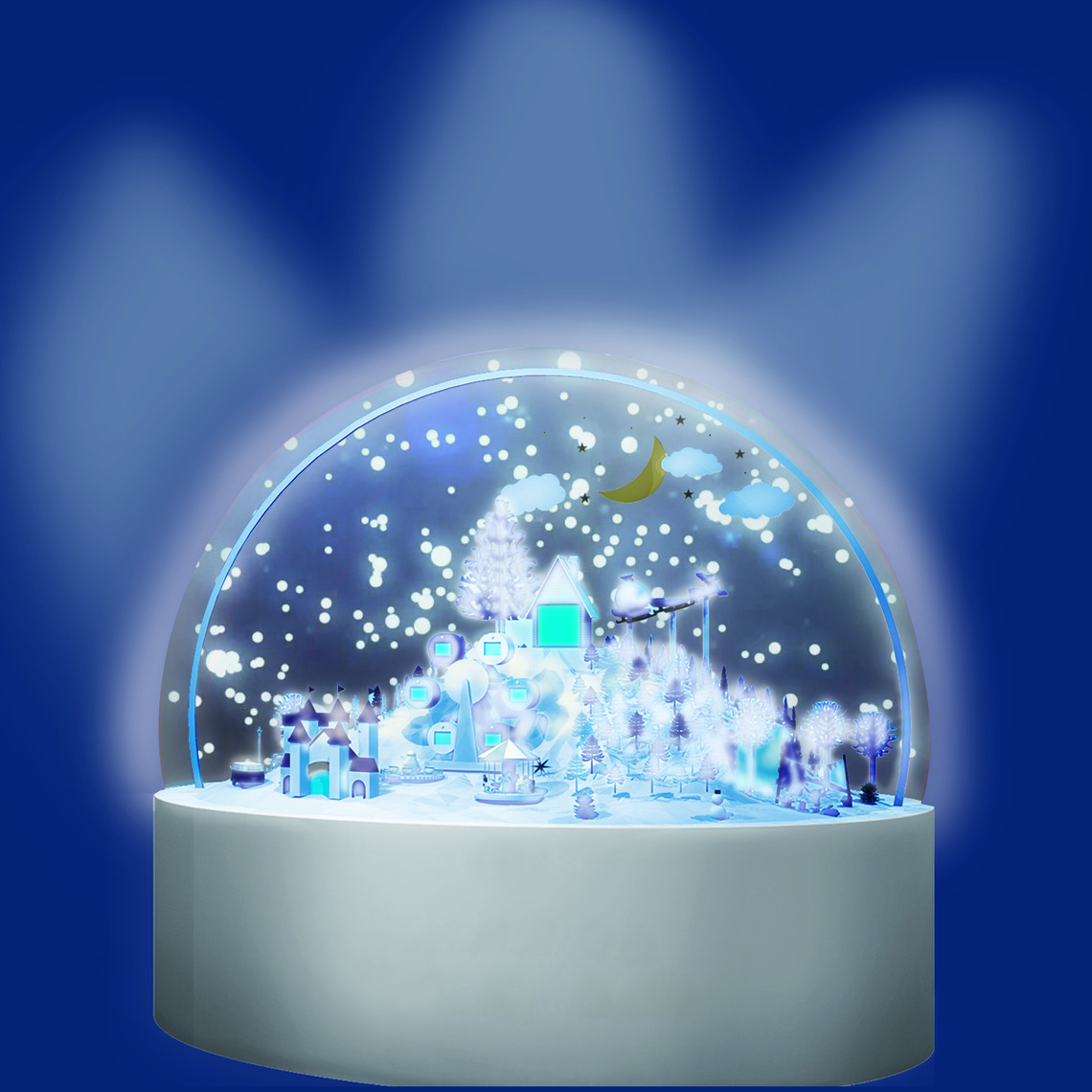 We created a story where everyone can enjoy various heart-racing interactive experiences in "SNOWDOME TOWN," which encapsulates special moments, using the snow globe—a well-known winter motif—as the campaign's symbol. Originally crafted as paperweights, snow globes gained popularity as thoughtful trinkets and travel souvenirs after the Eiffel Tower was enclosed within one in 1889. By capturing and preserving landscapes, scenes, and moments, and using the fantastical snow-dancing snow globe as the motif object, we express our desire for Lumine to create a "shining moment" – Christmas – for each and every customer.