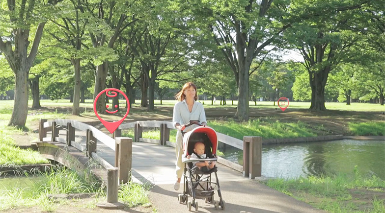 The accumulated big data from Smile Explorer—comprising stroller movement logs and smile location data—enables analysis from perspectives like preferred locations for babies and parents with children. This can aid in creating baby-friendly cities and developing facilities/services.