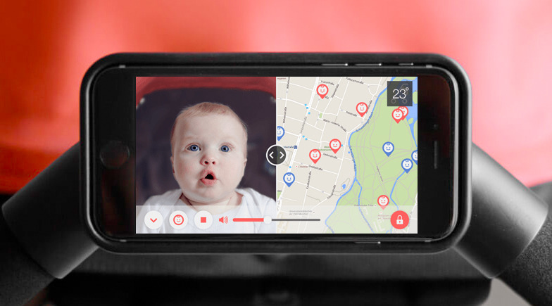 This is an IoT stroller based on the concept of a "communication stroller that makes challenging travel times enjoyable."