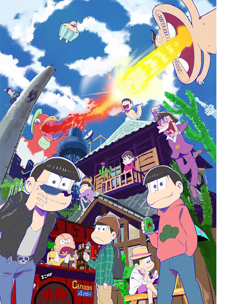 An anime commemorating the 80th anniversary of Fujio Akatsuka's birth. It depicts the future of the classic gag manga "Osomatsu-kun," featuring the national icons, including the sextuplets, as adults. Its high-energy storylines gained popularity, and the official account has over 200,000 followers.