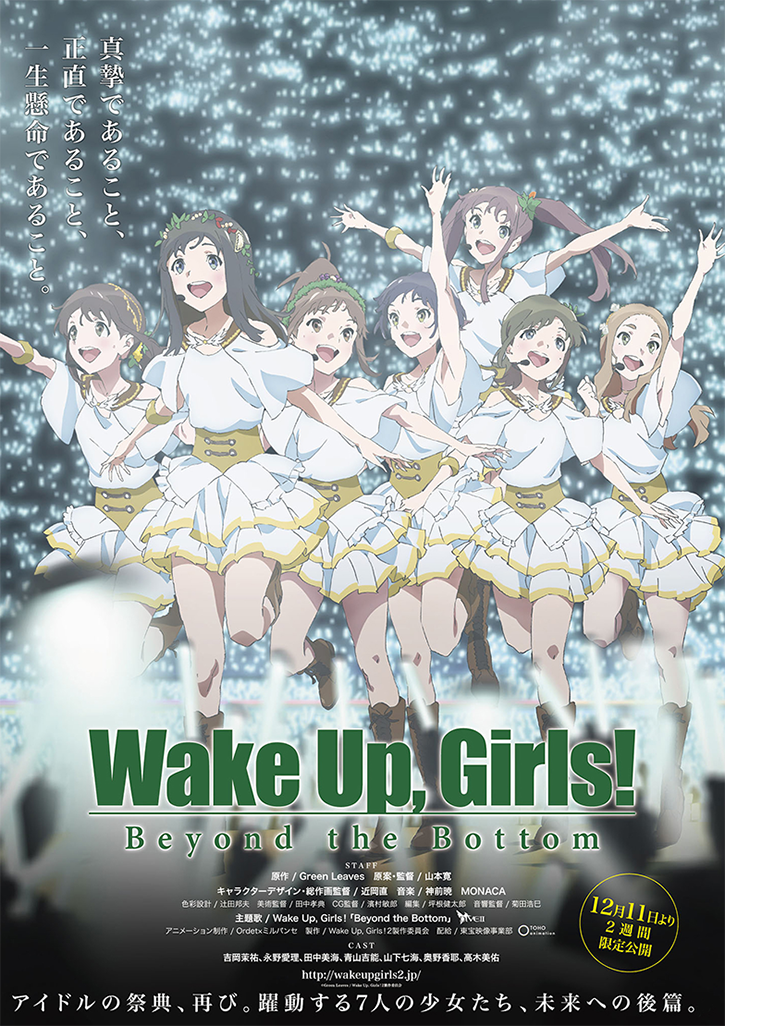 An anime series "Wake Up, Girls!" set in Sendai, featuring seven girls aspiring to be idols, and the derivative voice actress unit. The seven cast members portraying the characters also perform as the real-world voice actress unit Wake Up, Girls! Their solo tour held this July-August drew approximately 10,000 attendees across four cities. A fan club-exclusive bus tour is scheduled for this fall, and the latest anime theatrical film is set for release on December 11.