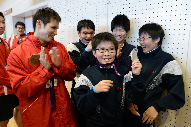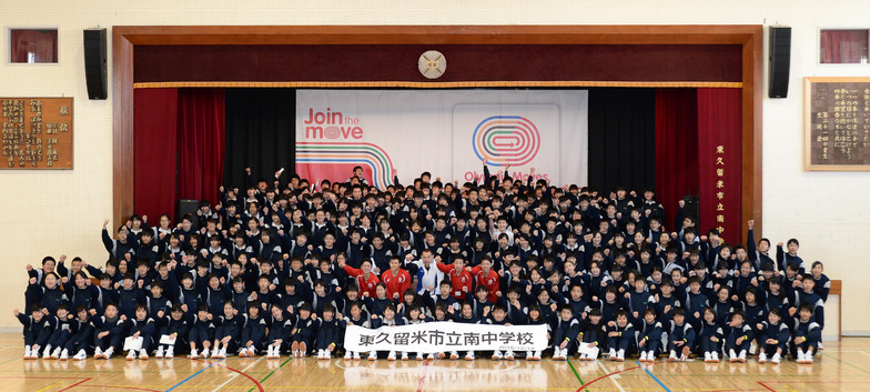 On December 19, the first-ever "Olympic Moves" event in Tokyo was held at Minami Junior High School in Higashikurume City. The school is one of Tokyo's Olympic and Paralympic Education Promotion Schools. Approximately 250 students from the school participated, along with Hiroyuki Murofushi, Sports Director of the Organizing Committee; Paralympic swimming medalist Keiichi Kimura; and three players from Nippon Sport Science University's badminton team. Mr. Murofushi stated in his address, "People participate in sports for various reasons, but today's activities involve slightly different sports. Let's experience the joy of achieving a common goal through teamwork."