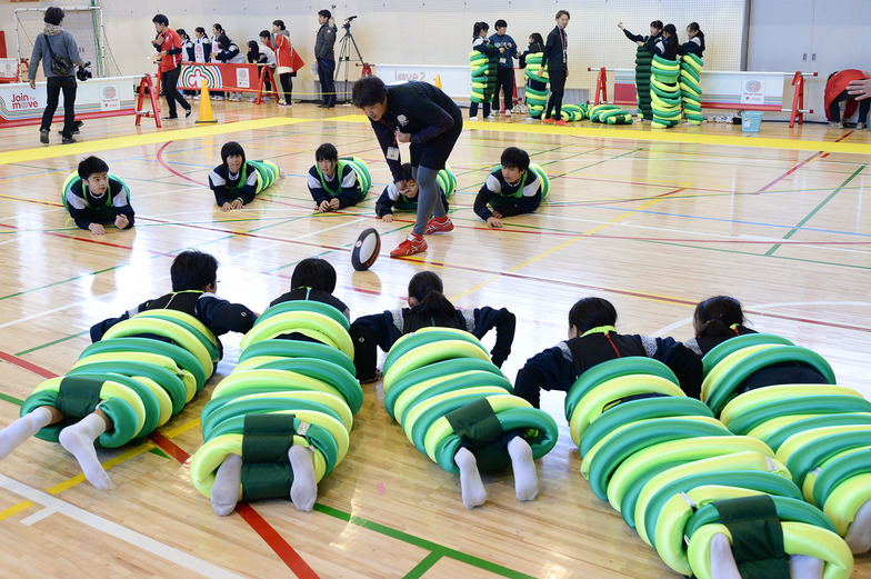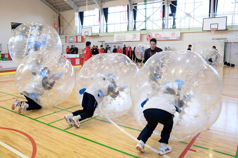 The students challenged themselves in five events inspired by Olympic sports: "Bubble Soccer," "Caterpillar Rugby," "Baby Basketball," "Speed Lifting," and the "100cm Run." These are "casual sports" that anyone can enjoy, transcending athletic ability, skill level, race, and language.