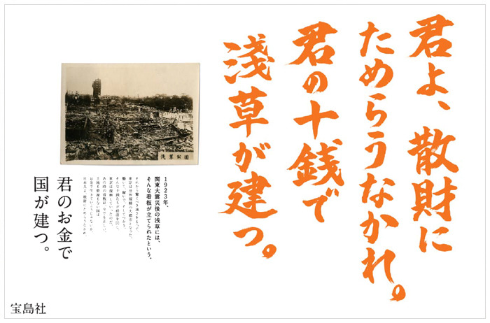 2012 "Do not hesitate to spend your money. Your ten sen will build Asakusa."