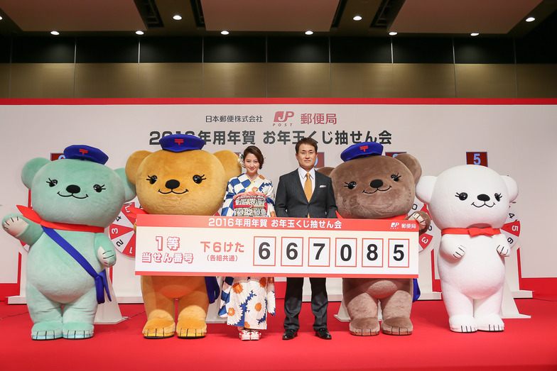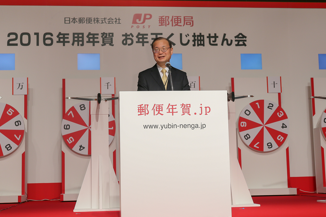 Japan Post held the "2016 New Year's Greeting Card Lottery Drawing" at JP Tower in Chiyoda Ward, Tokyo, on January 17.