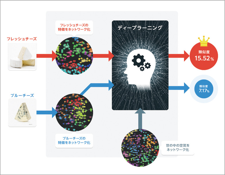 This time, we modeled the neural networks of the human brain to capture the nutritional information patterns stored in people's minds, as shaped by television. We then derived the similarity between this neural network and the feature network of cheese.