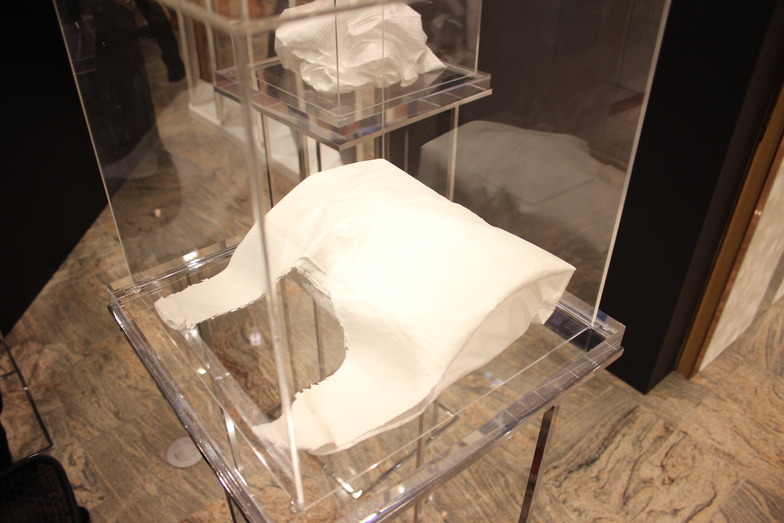 The 3D printer that creates fabric from thread itself is still only a prototype, with just one unit in the US. Bringing it to Japan would be too risky. So, we displayed actual products made with this printer, like seamless tank tops, and showed the manufacturing process via video. It's a process where liquidized fibers are sprayed onto a mold, dry, and then the finished garment is removed from the mold.