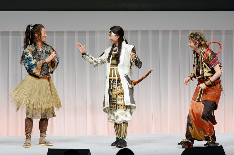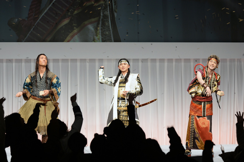 During a Q&A session with attendees, when asked, "Do people call out your character names on the street?", Kiritani, who plays Urashima Taro, shared an experience where an elementary school student in a park hummed the song lyrics from the commercial and asked him, "Are you the guy from 'I want to know the voice of the sea'?" When asked "What were your thoughts when you got the role in the commercial?", Suda, who plays Oni, replied, "I thought I'd have to wear just yellow and black pants and get my body painted red and blue," drawing laughter. The three engaged in a well-synchronized conversation, with Suda demonstrating the Japanese drumming he performed in the commercial and challenging fans to a game of guessing numbers using a switch, enjoying a fun time together.