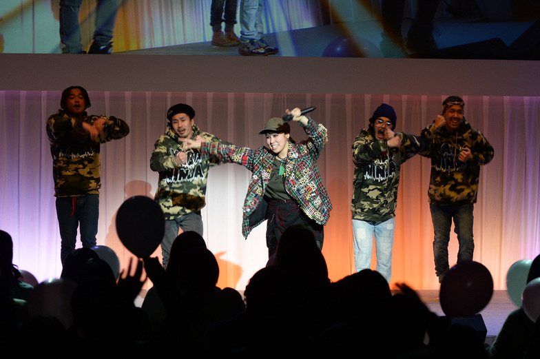 Amid the lingering excitement, surprise guest artist AI was introduced, filling the venue with gasps of surprise and delight. When AI passionately performed "Minna ga Minna Eiyuu" (Everyone is a Hero) and "Happiness" – songs from au's TV commercial "Spring Door: Everyone is a Hero" – the venue's energy reached its peak.
