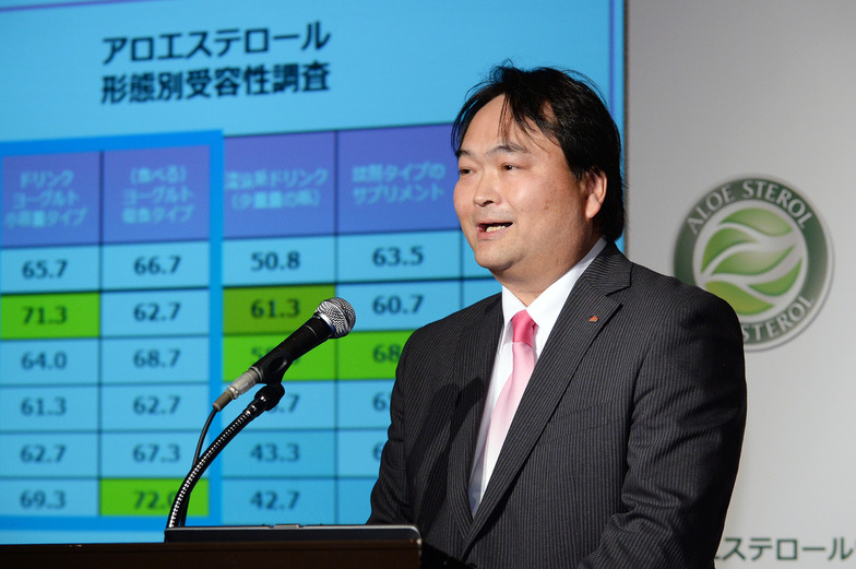 Ahead of the launch, a press conference for the new products and TV commercial was held at the Grand Hyatt Tokyo in Minato Ward on March 24. Executive Officer Hiroki Takamizawa explained that the yogurt market, particularly functional yogurt, has shown significant growth in recent years. He stated, "We are launching the Aloest series targeting women in their 30s and older who are highly conscious of beauty." Yogurt Marketing Group Manager Makiko Kawakami presented that the product was developed under the concept "Beauty from within: Create your own beauty," emphasizing features like a refreshing taste and low calories that make it easy to consume daily.